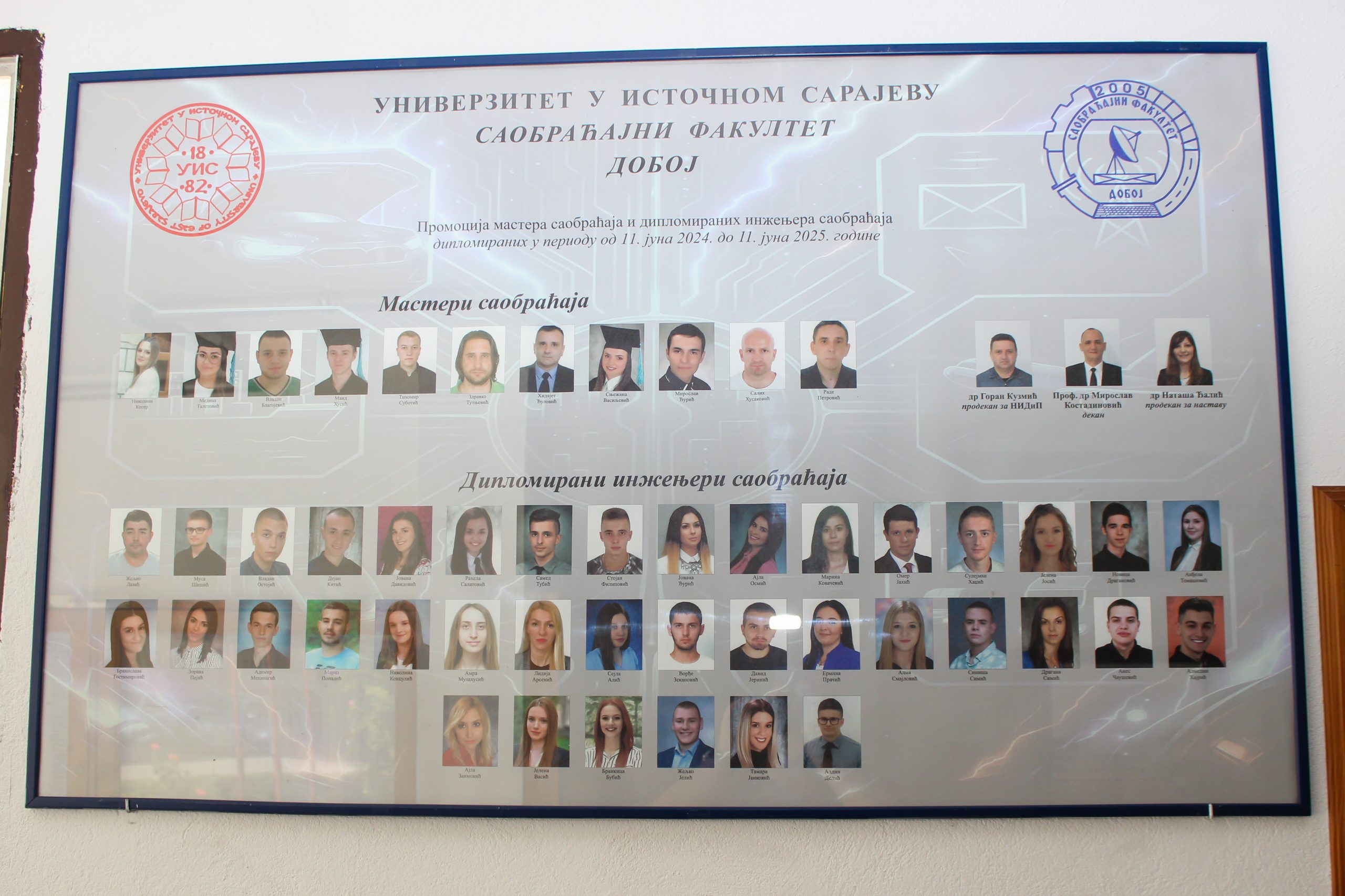 На Саобраћајном факултету Добој Универзитета у Источном Сарајеву, 10. јуна 2025. године, одржана је свечана промоција диплома – јубиларна, двадесета по реду. Том приликом уручено је укупно 49 диплома, и то 38 дипломираним инжењерима саобраћаја и 11 мастерима саобраћаја.